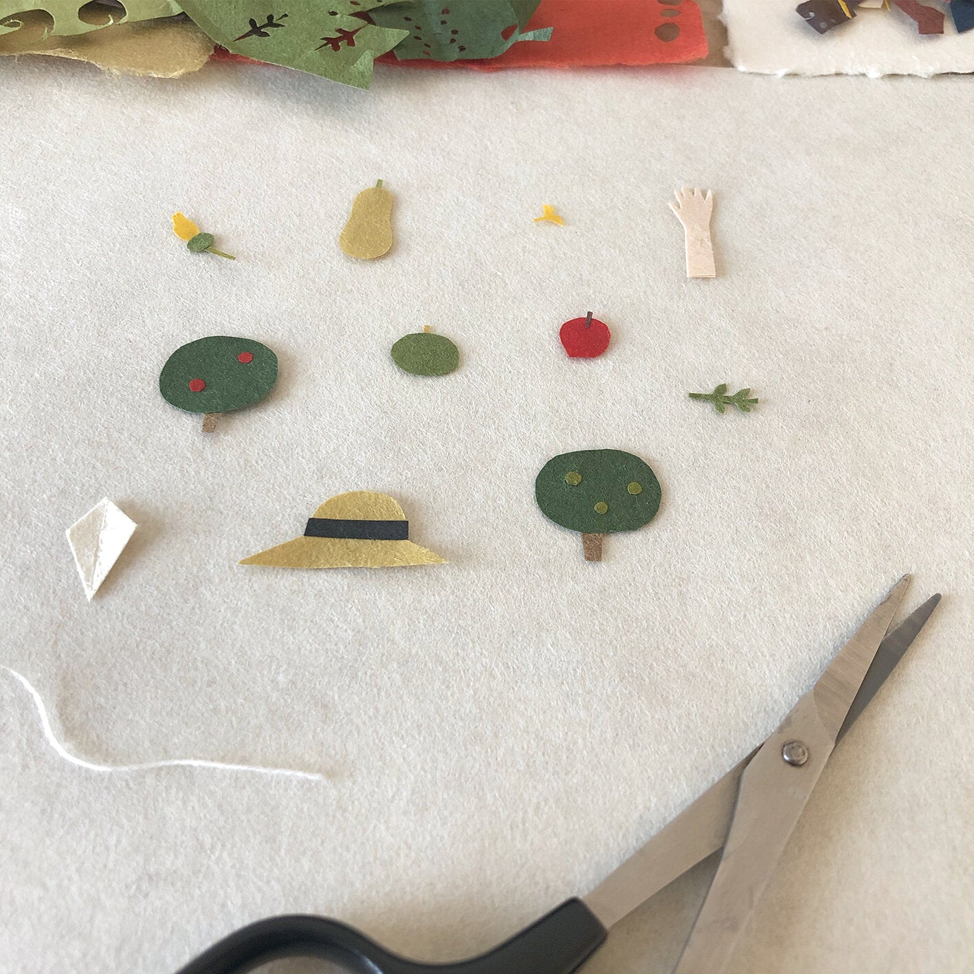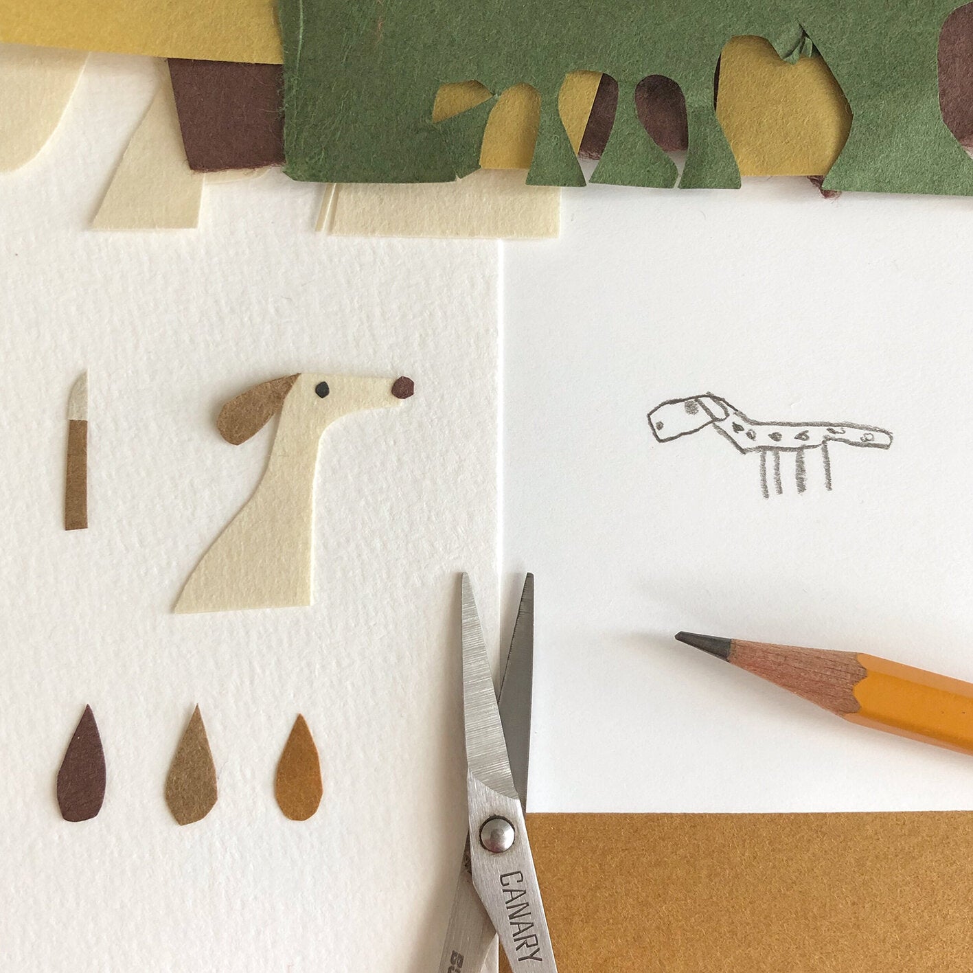 Every illustration is cut & pasted by hand. I work with Japanese washi paper for its natural colour palette & texture. My illustrations are made in a simple form and composition - no perfect lines nor digital effects, all hand made work.