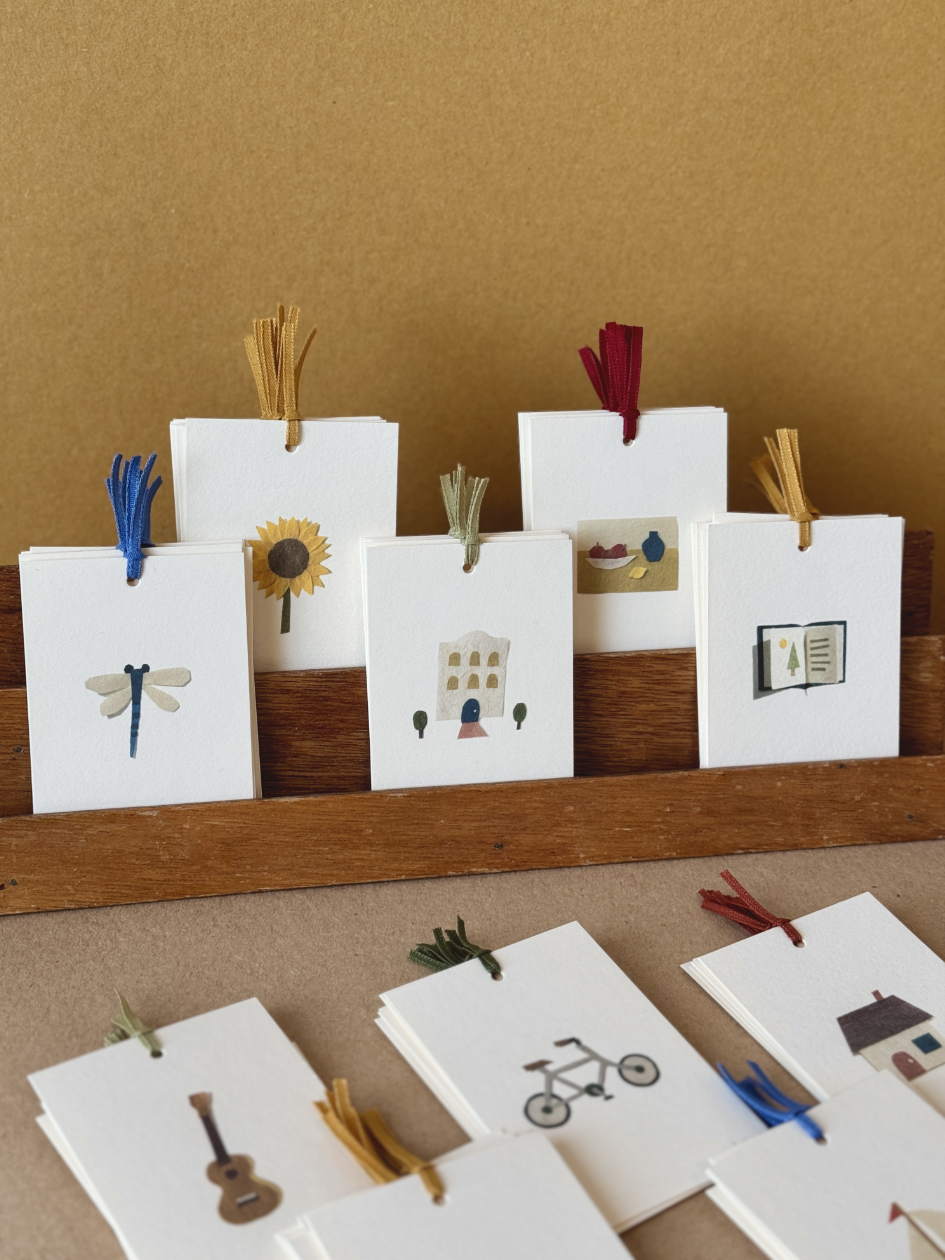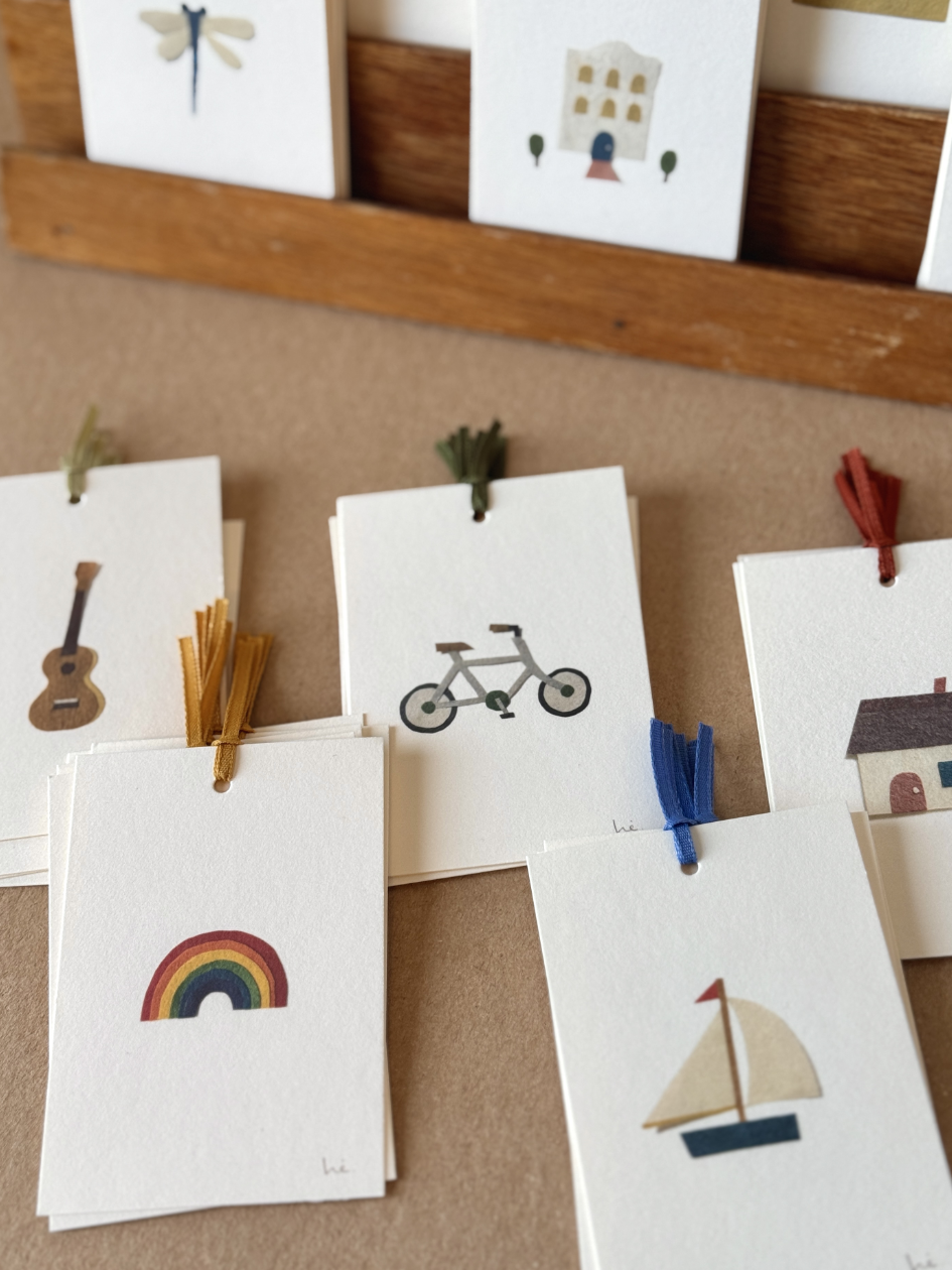 mini message cards / bookmarks with ribbons